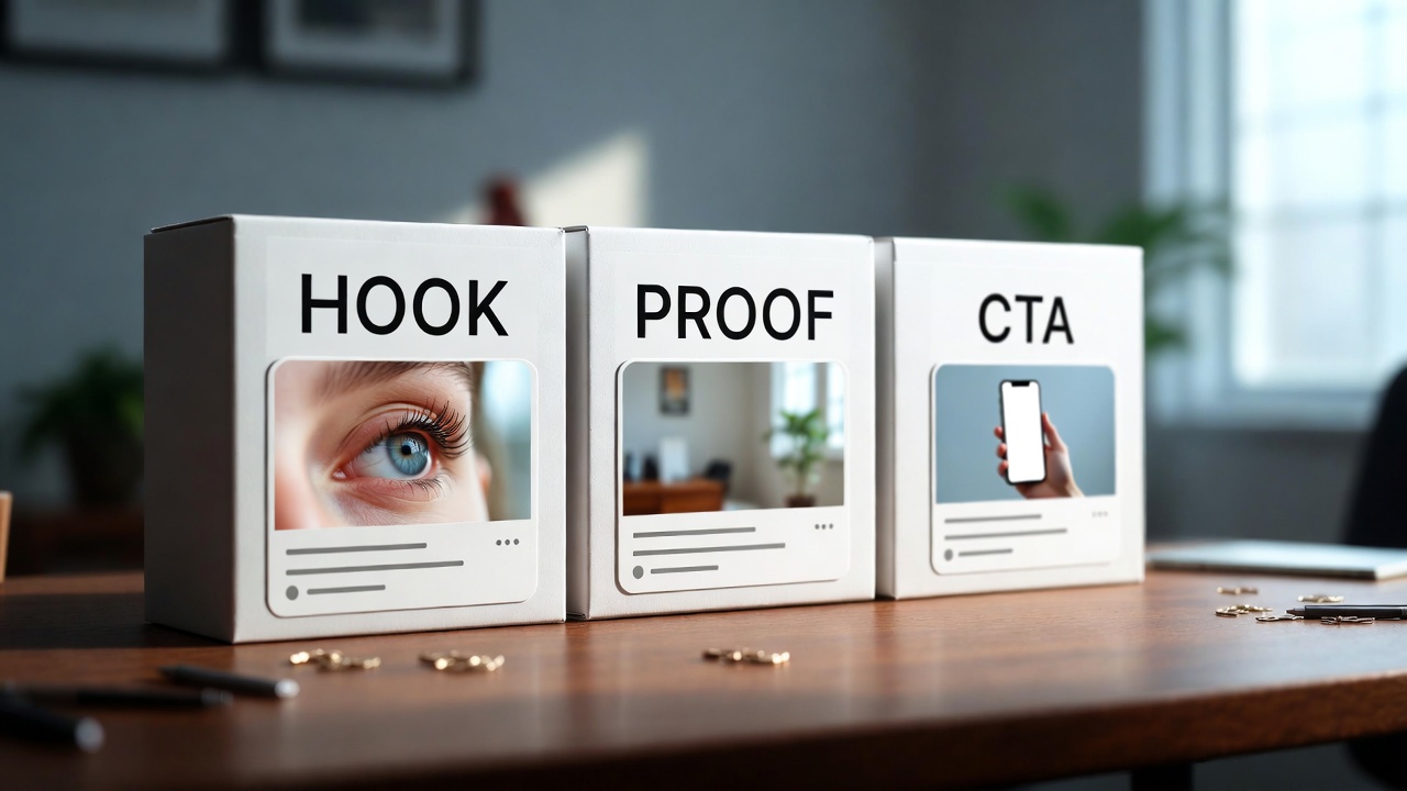 Audience pain point -> Product promise -> Visual proof -> CTAThen map it to time.