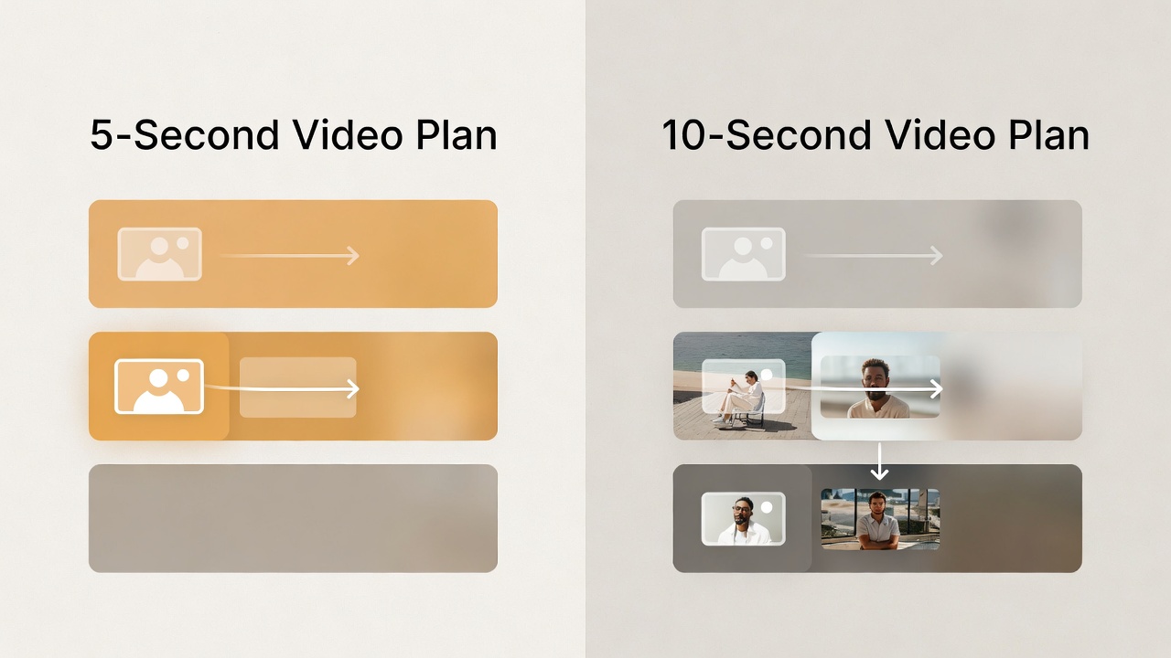 - For 5s clips, use 3 blocks: setup, action, ending frame.